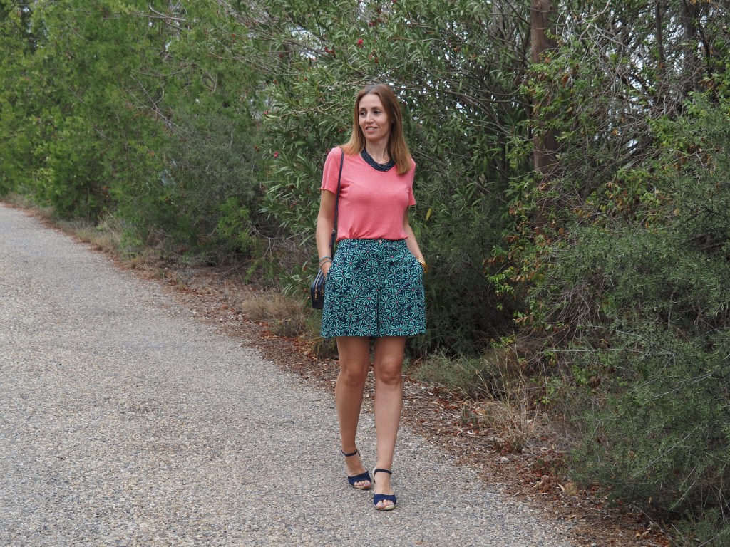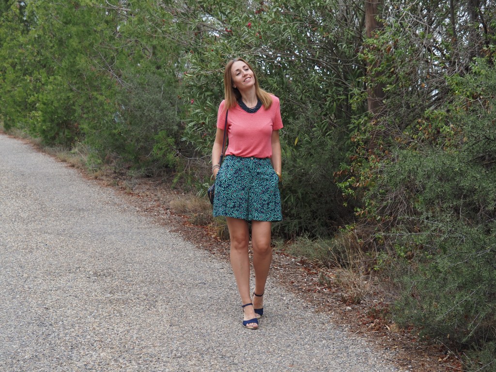 Outfit: Camiseta y falda/pantalón de Nice Things (S/S 21), collar de El Corte Inglés (old), bolso de Pull & Bear (old) y cuñas de tienda local (S/S 22).