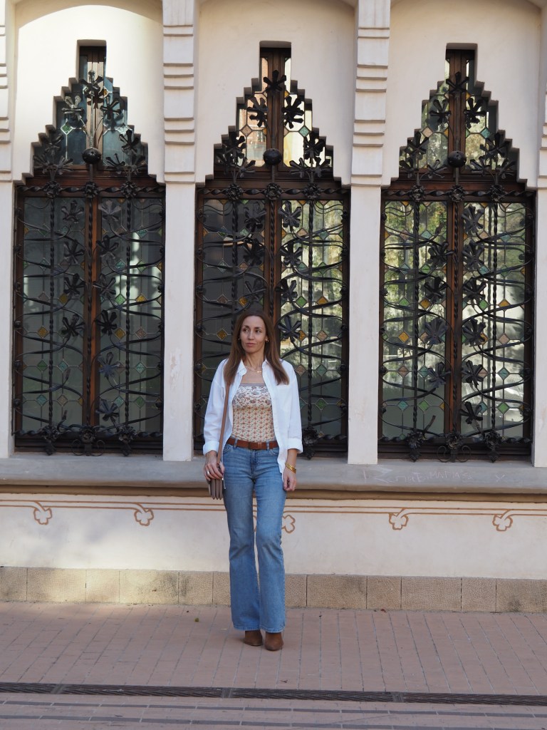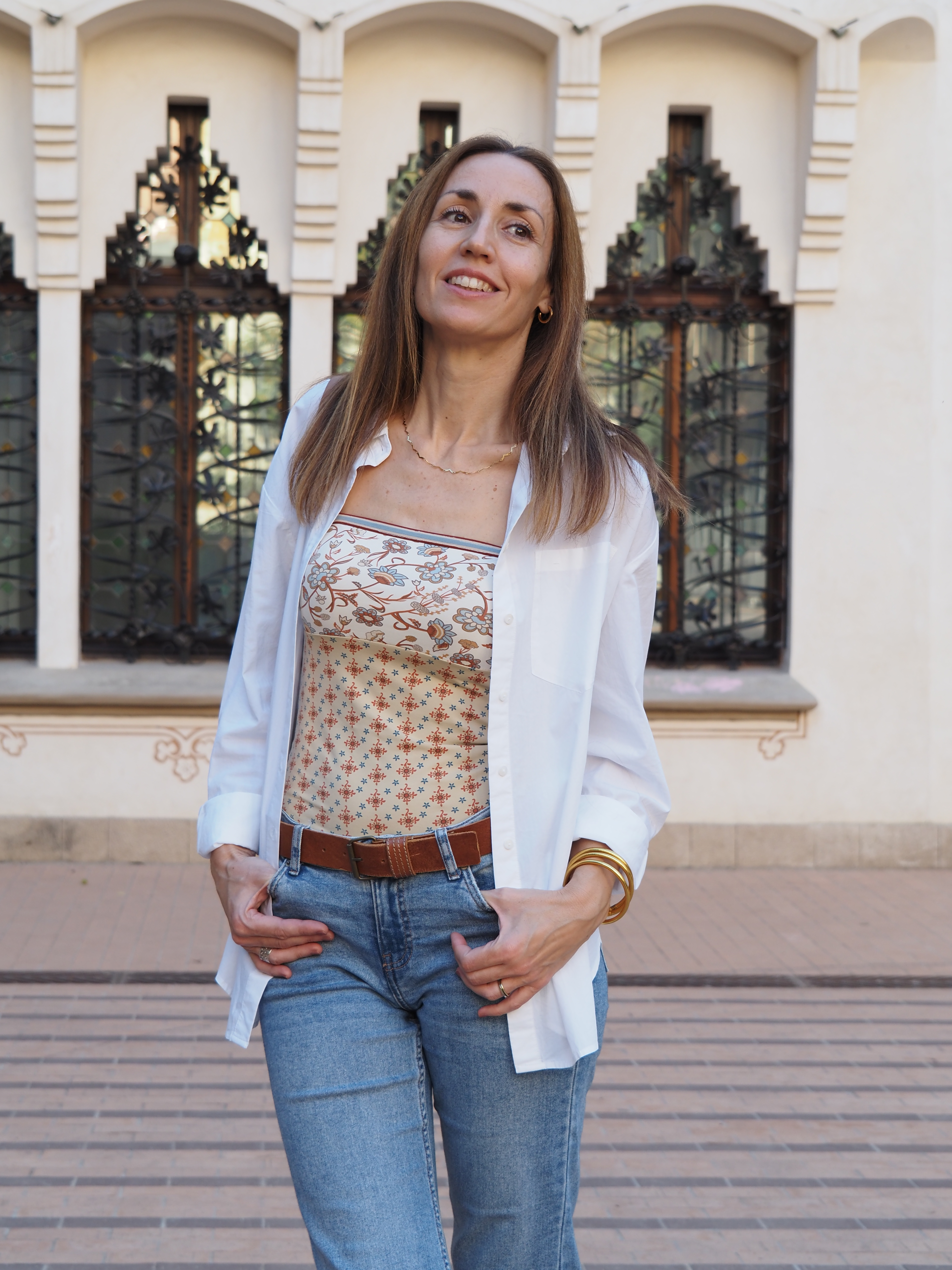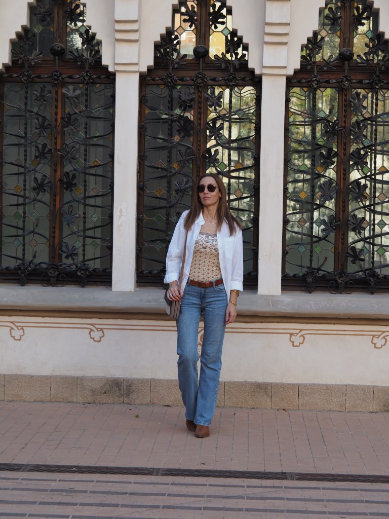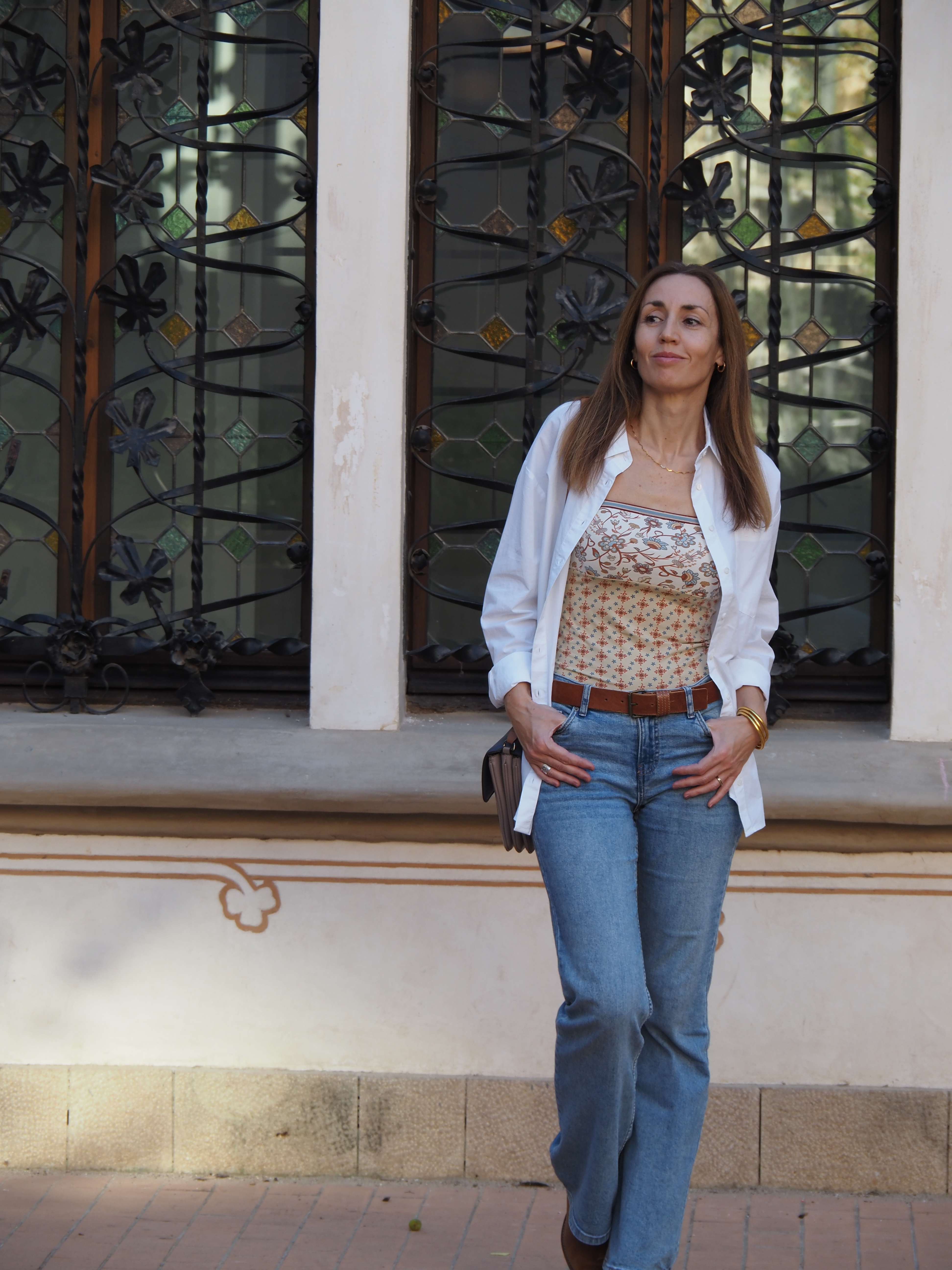 ¡Hola! En este post comparto un outfit del pasado fin de semana, de un día soleado y caluroso más propio de primavera que de noviembre. De base opté por unos jeans y una camisa blanca abierta a modo sobrecamisa, que combiné con un top sacado del baúl de los recuerdos (lo tengo desde principios de los 2000) y con las botas cowboy que ya habréis visto por aquí en otras ocasiones.