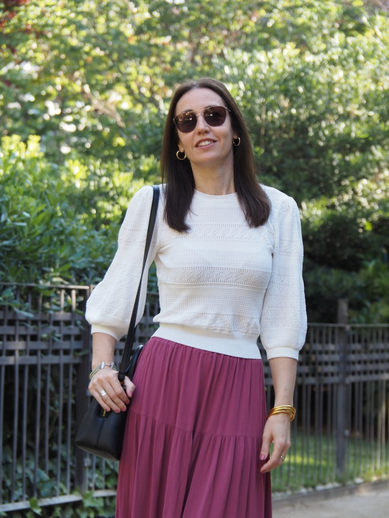 ¡Hola! En este post comparto un look del pasado fin de semana, en el que ya entra en escena una prenda veraniega: la falda larga de tejido vaporoso.